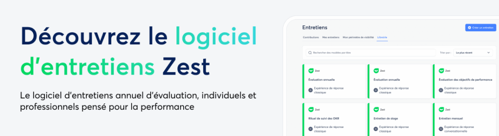 Pour transformer vos entretiens annuels en véritables leviers d’engagement, Zest propose une solution complète qui facilite la préparation, la conduite et le suivi de ces moments clés.