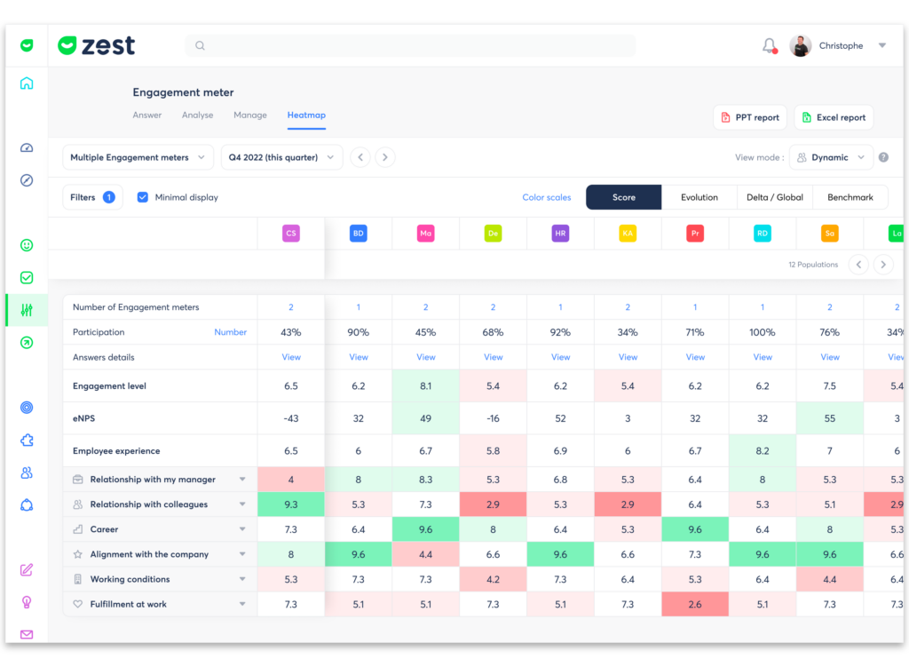 Avec ses différentes fonctionnalités, Zest vous permet de mesurer la satisfaction et l’engagement des collaborateurs en temps réel. Notre solution vous permet d’envoyer des questionnaires réguliers à vos collaborateurs pour calculer et piloter leur engagement.