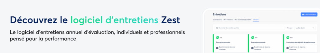 Des solutions comme Zest proposent des outils gratuits et personnalisables pour digitaliser l’entretien annuel. Ils facilitent la centralisation des réponses, l’analyse automatisée des résultats, la génération de rapports RH et le suivi des plans d’action. Ces outils permettent également d’industrialiser la démarche sans perdre la qualité des échanges humains.