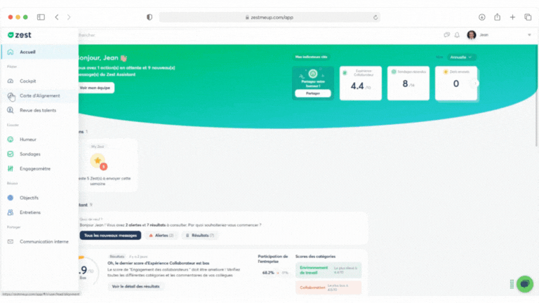Un logiciel OKR dédié est rapidement indispensable pour structurer, suivre et optimiser vos objectifs d’entreprise dans le cadre de la mise en place de la démarche OKR. Zest vous accompagne dans cette transformation en proposant une solution intuitive qui centralise la définition, le suivi et l’analyse de vos OKR individuels et collectifs. Découvrez comment notre plateforme simplifie la mise en œuvre de la méthode OKR.